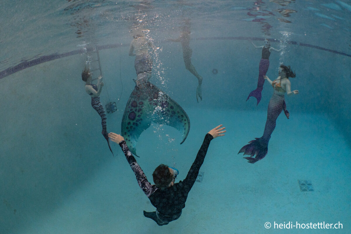 On Sunday mornings, Anatoliy Pack’s training begins in the deep pool. The mermaids dance underwater and show off their elegance. Holding your breath is not so easy, nor is controlling the long tail fin.